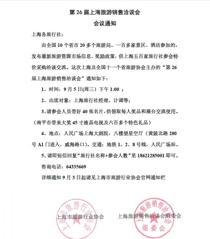第26屆上海旅游洽談會會議通知