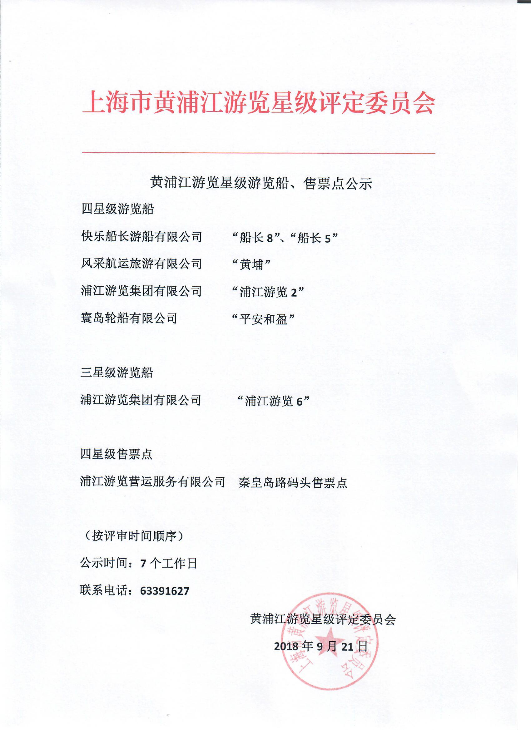 黃浦江游覽星級游覽船、售票點公示