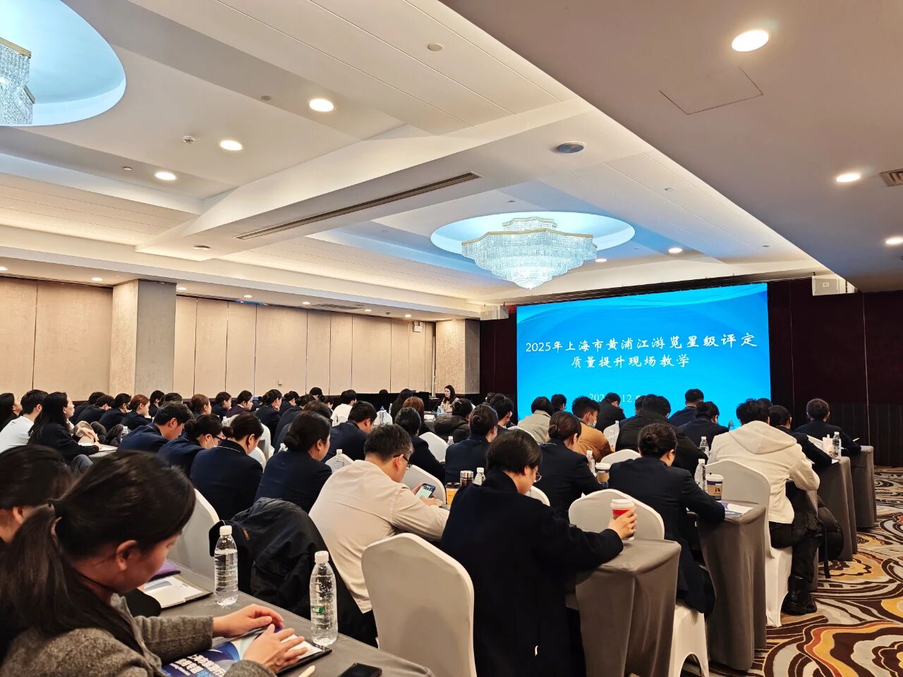 12月10日,2025年上海市黃浦江游覽星級評定質量提升現場教學活動舉辦。上海市旅游行業協會秘書長、黃浦江游覽星評辦主任許婷主持會議并作培訓開班動員,市文化和旅游局行業主管部門相關處室負責同志蒞臨現場指導。浦江游覽船公司、游覽碼頭、運服公司等行業一線服務人員共計100余人參與此次教學活動。