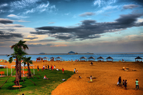 美麗的金山城市沙灘位于杭州灣北岸,金山區南端,是國家AAAA級旅游景區。它由東北向西南徐徐延伸,因緊鄰城區而得名,是一條集人文、活力、休閑為一體的城市景觀海岸線,也是金山濱海新城環境一流、服務完善、產業俱全、魅力獨具的濱海休閑度假區。城市沙灘景區于2006年7月正式對外開放,年均游客接待量達150萬人以上,2011年游客接待量高達220萬人次。